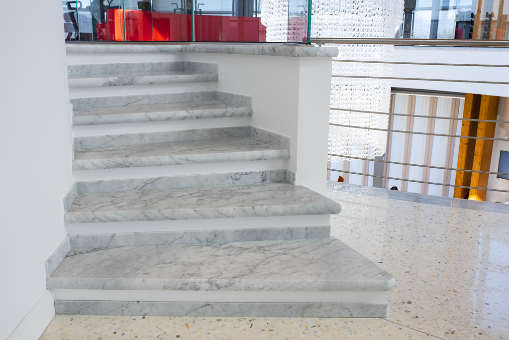 Scala in marmo presso nuovo centro direzionale Orva S.p.A. - Bagnacavallo (RA)